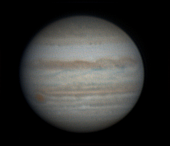 Society member Anthony Day captured some fantastic images of Jupiter which he has consolidated into this animated GIF which clearly shows the fast rotation of the gas giant featuring the Great Red Spot.